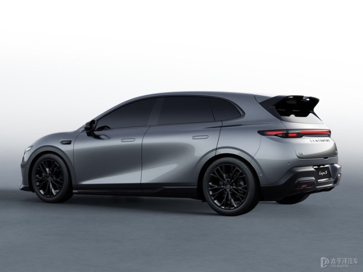 车尾同样采用贯穿式尾灯,两侧三点式结构为零跑家族标志性设计,车顶配有大尺寸扰流板,尾箱线条略带突出,整体风格统一。